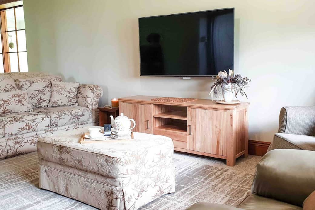 Large loungeroom with open plan dinning, table to comfortably sit 10. A second dinning space adjacent the kitchen ideal for breakfasts or a kids retreat, while guest can make use of the large patio and outdoor settings to enjoy a meal overlooking the gardens and countryside.